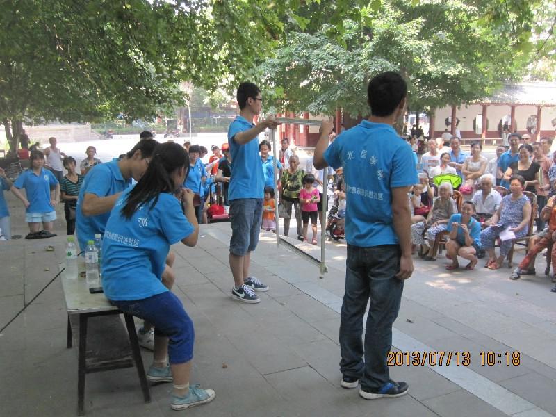 临床医学系赴南充防震减灾急救知识进社区应急救护队利用暑期深入社区、街道采用多种形式宣传地震逃生、心肺复苏、止血、包扎等急救知识,累计发放宣传单5000余份,发放调查问卷1800份,免费测量血压人数1000余人,防震减灾情景剧展示10余场,手把手教学教会居民心肺复苏100余人,受惠群众多达3000余人,先后受到《华西都市报》、《南充日报》、《南充晚报》等媒体的宣传报道。临床医学系赴眉山仁寿县关爱留守儿童社会实践服务队为留守儿童送去温暖和爱心,送去书包70个,走访留守儿童家庭60余户,为留守儿童辅导假期作业,帮他们树立理想;并到乡镇敬老院打扫卫生、为老人测血压、宣传健康知识,看望残疾人并慰问老党员,发放宣传单2000份,调查问卷800份,累计服务群众1000余人次。