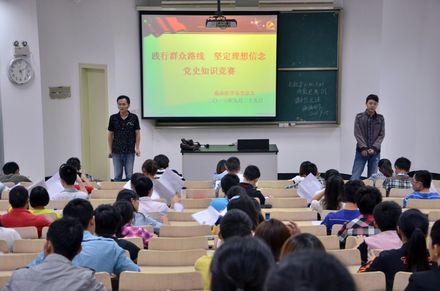 9月25日,临床医学系党总支举行了以“践行群众路线,坚定理想信念”为主题的党史知识竞赛”,300名入党积极分子参加了竞赛。