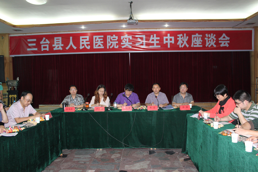 金秋送爽,中秋月圆。值此中秋佳节来临之际,为了让来自四面八方的实习生们感受到家的温暖,进一步了解实习同学们在实习期间的思想学习、工作、生活情况,2013年9月18日下午,三台县人民医院隆重举行了实习生中秋座谈会。三台县人民医院院长吴天清、副院长蒋忠、各科室主任及教学秘书等出席了本次座谈会。会议由副院长蒋忠主持。