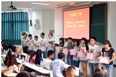 大会在庄严的国歌声中拉开帷幕。上一届团总支、学生分会干部代表分别就过去的一年中在学风建设、校园文化建设、社会实践活动、主题团日活动、文体活动、志愿服务活动、学术科研活动等方面取得的成绩和存在的不足作了简要总结。大会对2010级第三届团总支、学生分会优秀学生干部进行了表彰。2011级年级办主任何理老师及2010级年级办杨丽老师分别宣读了两个年级新一届干部成员名单。新老干部代表分别在会上作了发言。全体成员进行了庄严的宣誓。