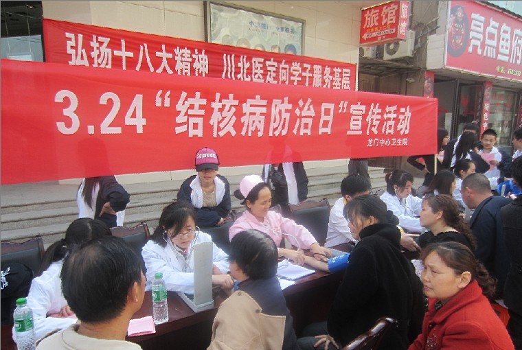 3月24日,是第18个“世界防治结核病日”, 临床医学系2010级第九党支部围绕“你我共同参与,消除结核危害”主题,在龙门镇开展了结核病问卷调查、知识宣传及义诊服务活动。该支部50余名定向学生分成三支小分队,分别开展“结核病防治基本知识”宣传、结核病知晓率的问卷调查、测量血压及春季疾病预防知识宣讲等服务活动。此次活动得到了龙门镇中心医院医护人员的大力支持。