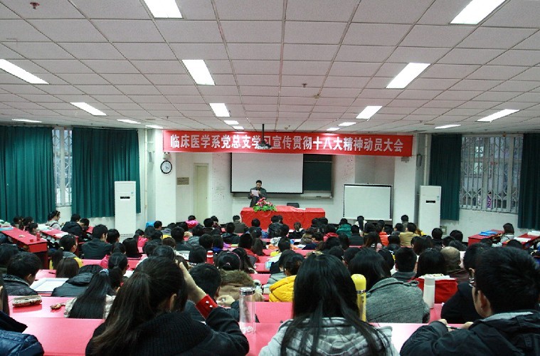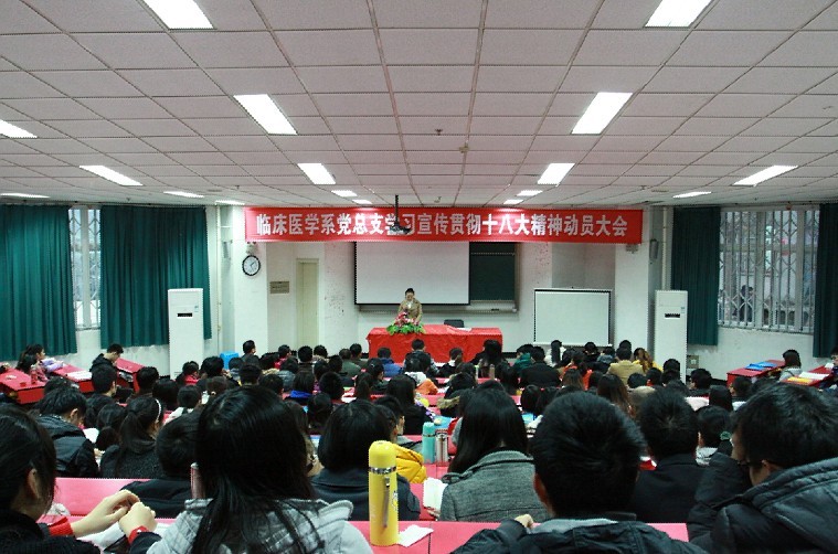 为了迅速掀起学习宣传贯彻党的十八大精神热潮,按学校总体安排部署,临床医学系党总支于11月23日组织召开了学习宣传贯彻党的十八大精神动员大会。330余名学生党员代表参加了动员大会。