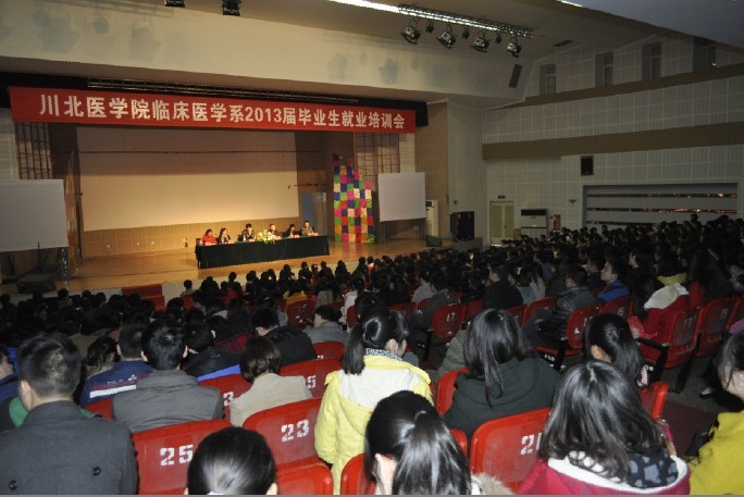 11月21日下午四时,由川北医学院临床医学系党总支主办的2013届毕业生就业培训会在顺庆区世纪礼堂顺利举行。近800名临床医学毕业生参加了培训会。