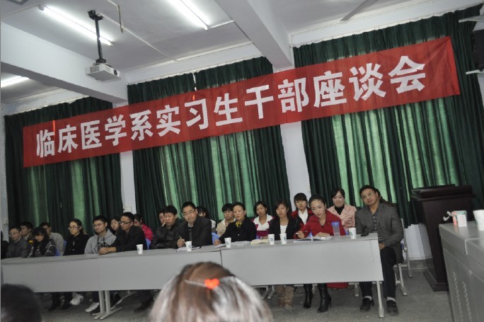 培训会前,临床医学系党总支组织召开了实习队学生队长和党支部书记座谈会,教务处及系上相关负责同志应邀参加了座谈会。