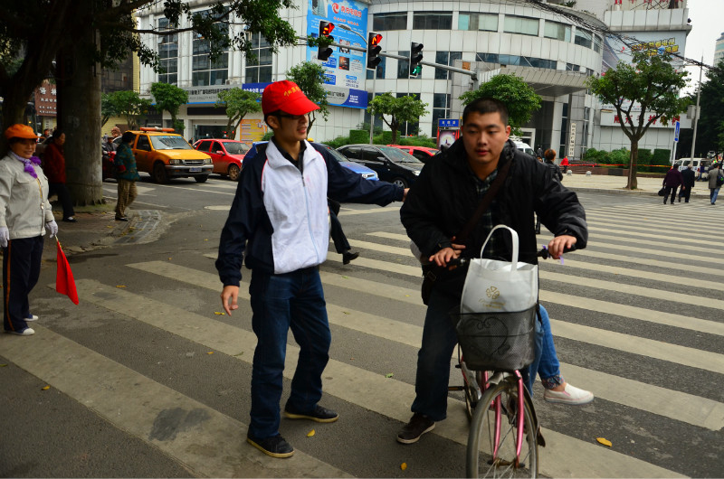 “老人家,请等绿灯了再过街。”10月23日,来自川北医学院2010级的69位临床医学系第二党支部的党员与预备党员,在市交警一大队的干警、协警、文明劝导员的配合下,参与了执行交通管理的工作。