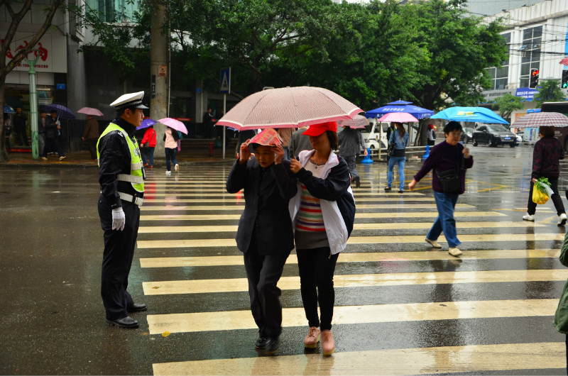 在进行了简短的启动仪式后,川北医学院的同学们纷纷站在了各自的“岗位”,在城区灵秀灯岗的4个路口处协助干警、协警等纠正违法行为,帮助过路的老人、小孩,并向过往行人发放宣传单。虽然天空下着细雨,但这并未浇灭警民一心的热情,大家忙前忙后,向市民们讲解机动车礼让斑马线等“六大文明交通行为”;摒弃机动车随意变更车道等“六大交通陋习”;抵制酒后驾驶等“六大危险驾驶行为”;改善城市过街安全设施等“六类道路通行条件。”,倡导更多的市民加入到文明交通的大家庭里。“南充的交通还有很多的问题,希望我们的微薄之力,能感染市民,触动社会,让更多的市民了解文明交通的必要性。”学生李沛云说道。