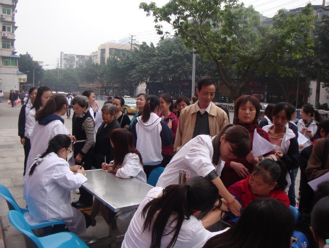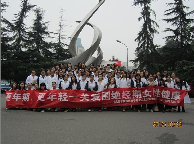 为了以党建促学建,提高大学生的政治素养和思想觉悟,从而带动学风建设,完善党支部组织建设,以热情饱满的精神面貌迎接党的十八大的成功召开。本着深入基层、为人民群众服务的精神,2012年10月28日下午,在顺庆区涪江路,临床医学系党总支2009级第十六、十七、十八党支部联合举行了“更年期,更年轻——关爱围绝经期女性健康”党日活动。