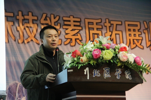 仪式结束后,普外科主任、肝胆胰肠疾病研究所副所长李敬东老师为同学们做了一场名为“浅谈医学生临床技能培养”的专题讲座。讲座围绕临床医学的相关特点和需要,用人单位的需要,自身发展的需要和社会的需要四方面展开,使同学们深刻认识到临床技能培养的重要性,同时让同学们充分明白了临床技能在临床实践中的重要地位,坚定了医学生早临床、多临床的信念。