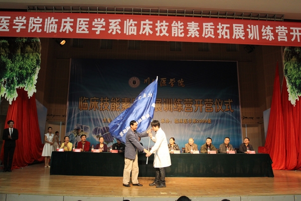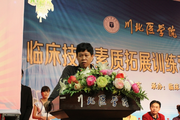 10月12日下午,临床医学系临床技能素质拓展训练营开营仪式在顺庆校区世纪礼堂隆重举行。学院党委副书记李成军,党办、院办主任胡春梅,党委宣传统战部部长李于骅,临床学院副院长杨德本,临床医学系副主任周仲辉,川北医学院附属医院普外科主任、肝胆胰肠疾病研究所副所长李敬东,心内科副主任陈丽,外科教研室副主任周彤,学生处副处长刘贤君,临床医学系党总支及年级办全体老师参加了开营仪式。