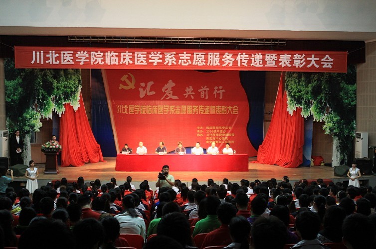 在全国第十个“公民道德宣传日”的特别日子,为展示系部道德建设成果,推动系部志愿服务活动深入开展,临床医学系在顺庆校区世纪会堂隆重召开志愿服务传递暨表彰大会。学院院长康健出席会议并授旗,学院党委宣传部部长李于骅、临床医学系常务副主任杨德本、学院关工委副秘书长杨纯良,南充市第四人民医院党委书记、院长庞光枢、学院附属医院医务科科长冯江超及临床医学系800余名志愿者师生代表与会。