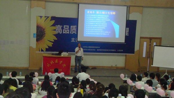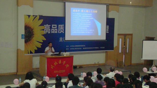 2012年5月31日晚7:00,我系09级第三、第六学生党支部、“心理咨询”党员志愿服务队联合川北医学院大学生心理健康教育委员会和大学生心理卫生协会邀请四川省精神卫生中心副院长、副主任医师、临床心理学博士、川北医学院硕士研究生导师黄国平副教授为广大学子带来了一场题为《高品质沟通与冲突管理》的精彩讲座。