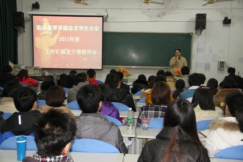12月20日下午,临床医学系团总支、学生分会2011年度工作总结暨干部培训会在顺庆校区二教202教室举行。学校党委副书记李成军出席会议并讲话,临床医学系党总支全体老师及临床医学系主要学生干部参加会议。