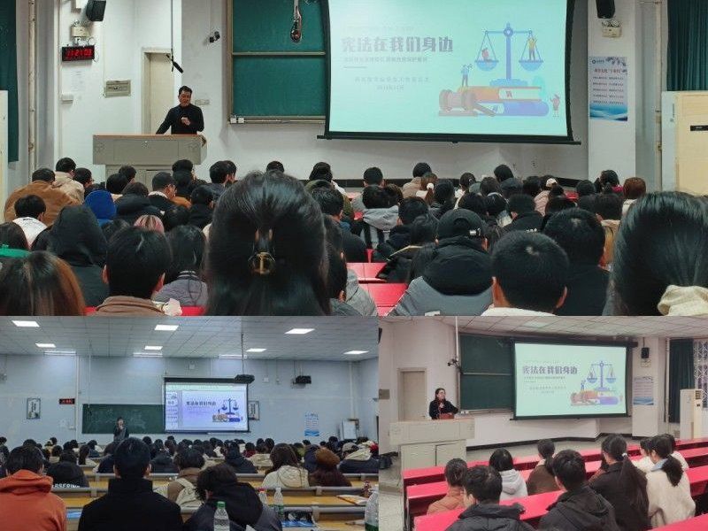 课上,同学们首先观看“宪法的精神 法治的力量——2024年度法治人物”宣传片。随后辅导员以习近平新时代中国特色社会主义思想、习近平法治思想及党的二十届三中全会精神为指引,从“宪法起源”、“中华人民共和国宪法”、“我们身边的宪法”、“宪法权利与大学生权利保护”带领同学们学习了宪法发展历程和宪法的地位作用,以生动的案例帮助同学们理解宪法在日常生活中的具体体现和应用,引导同学们树立尊崇宪法、维护宪法权威的意识。