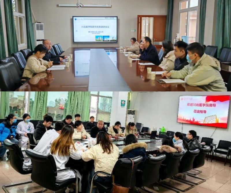 在自贡市,临床医学院研究生工作部到自贡市第一、第四人民医院,深入了解了基地的教学设施、生活环境以及研究生的学习情况,详细询问了研究生在基地的学习进展、遇到的困难以及他们对基地管理的意见和建议,对2025届毕业生的论文进展和就业状况并给予了及时指导。