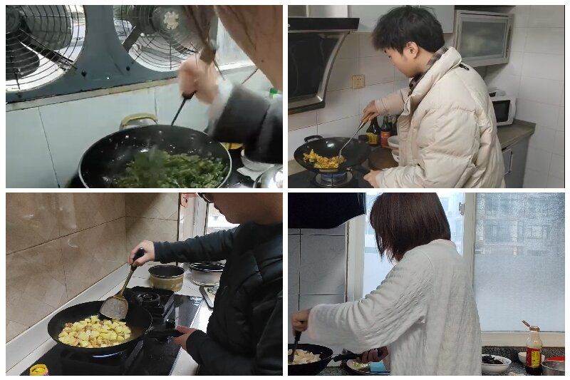 “厨艺秀”中,同学们各显神通:有的熟练翻炒,火候精准,有的复刻家乡传统美食,传递文化韵味。除了经典的回锅肉、酸菜鱼、水煮肉片等传统中式家常菜,还有披萨、蛋挞、薯条等融合菜品。时值新春佳节,许多作品如香肠腊肉、饺子、江米条等美食,蕴含着天南海北浓浓的年味。也有同学不囿于常规,创新性地将各类食材精心组合,凭借精湛的厨艺尝试出新的菜品,在锅铲和灶炉间开拓出一片新天地。