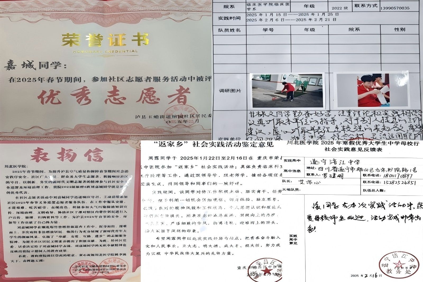 弘扬志愿精神、践行医者使命,临床医学院学子一直在行动。200余名志愿者响应号召,参与到寒假志愿服务活动中,近日收到来自服务单位的表扬信、荣誉证书和活动反馈表等多项嘉奖。