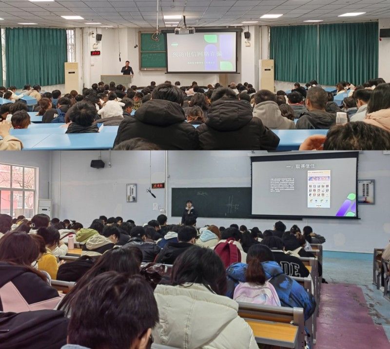 课堂宣讲,以案为鉴,强化防诈意识。针对当前电信网络诈骗手段多样化、学生群体易受骗的特点,辅导员以合班为单位开展反诈安全教育主题班会。辅导员结合近期高校发生的真实案例,详细解析了“刷单返利”“冒充客服”“虚假购物”“虚假买卖游戏账号”等常见诈骗套路,并重点普及了《中华人民共和国反电信网络诈骗法》相关内容,提醒学生做到“三不”——不轻信陌生信息、不透露个人信息、不随意转账汇款。同时,还通过播放反诈警示教育片等形式,帮助学生直观识别诈骗陷阱,提升应对能力。