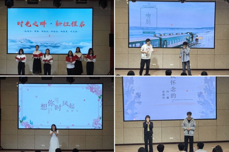 活动在青春洋溢的歌曲《世界上的另一个我》中拉开帷幕,现场气氛瞬间升温;民舞《山鬼》舞姿翩跹,古筝演奏《烟雨行舟》婉转悠扬,将传统文化与医学人文巧妙融合,传递医者情怀;经典曲目《我怀念的》、《吻别》引发全场师生合唱,将活动现场氛围推向高潮;原创朗诵《时光之畔,新征程启》以铿锵之声回溯学校发展历程,描绘临江校区未来蓝图,点燃奋斗激情。互动环节“快问快答”、“击鼓传花”聚焦校史与临江校区规划,同学们以诙谐语言畅谈搬迁期待,现场欢笑声与掌声此起彼伏。临床医学院2024级辅导员党延森勉励学子:“青春因奋斗而精彩,人生因拼搏而无悔。希望同学们在新校区的广阔舞台上勇担使命、敢于追梦,让每一次历练都成为成长的基石。”