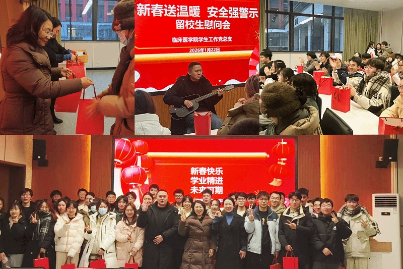 此次活动把“安全底线”与“幸福高线”同频系牢,既是一次新春团拜,更是一堂沉浸式安全教育示范课,彰显了临床医学院“围绕学生、关照学生、服务学生”的育人理念。通过领导寄语、物资帮扶、艺术疗愈与互动答疑“四位一体”模式,把学院的温暖精准送达寒假校园的角落,为留校学生科研攻坚、临床见习成长加装“安全阀”与“助推器”,也为构建平安、和谐、奋进的寒假校园写下了生动注脚。