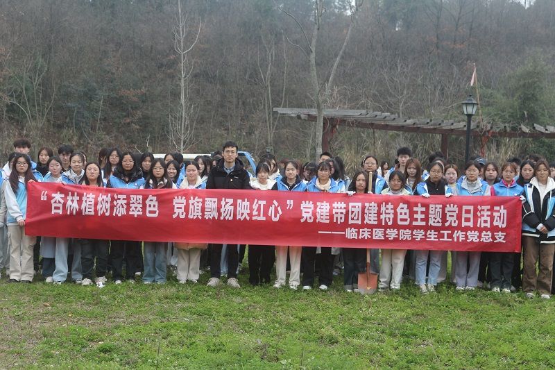 大地回春添新绿,植树造林正当时。为深入贯彻落实习近平生态文明思想,努力践行绿水青山就是金山银山理念,积极深化党团共建内涵,3月9日,临床医学院学生工作党总支在高坪校区开展“杏林植树添翠色,党旗飘扬映红心”党建带团建特色主题党日活动,60余名师生共同参与,以实际行动为校园增添了一抹生机勃勃的绿色。