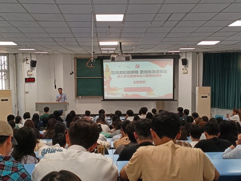 2022级第一党支部书记杨洋从“贯彻中央八项规定精神学习教育的意义?”“什么是中央八项规定?”“什么是中央八项规定精神?”“违反中央八项规定精神问题类别”四方面的讲解结合《中国共产党纪律处分条例》的相关条款学习引导学生党员争做新时代合格党员。观看了2025年《总书记的人民情怀》系列节目,领学了《习近平关于加强党的作风建设论述摘编》相关章节,号召全体师生党员:要深刻领悟、践行中央八项规定精神,时刻把党性修养摆在突出位置,把担当作为扛在肩上,不断改进工作作风、密切联系群众,使精神内涵内化于心,外化于行。