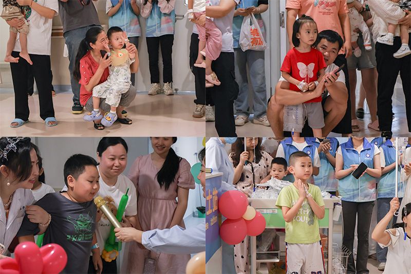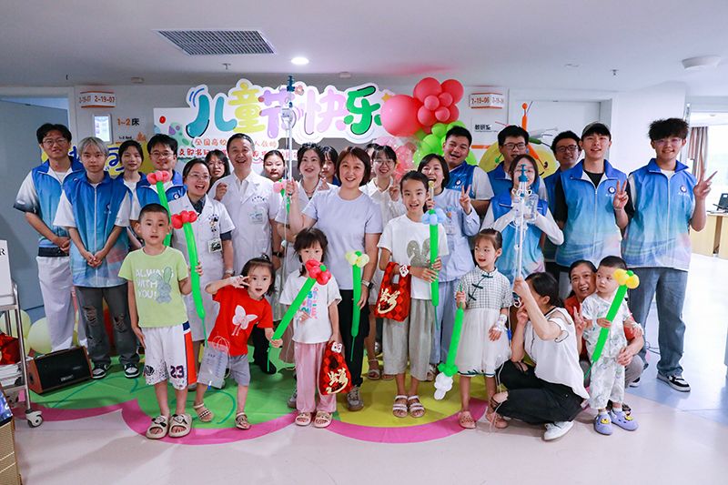 为了让小朋友们更深入地参与到活动中来,志愿者们精心设计了一系列互动环节。他们为小朋友们发放了各种各样的气球,有趣的动物模仿秀更是让现场笑声不断,孩子们纷纷模仿着各种可爱的动物形象。志愿者们还邀请小朋友们上台展示自己的才艺,每一个上台的小朋友都收获了热烈的掌声和小儿外科党支部精心准备的礼物。在一系列精彩的表演和欢乐的互动之后,在场的所有人一起进行了大合影,用镜头记录下了这一温馨美好的时刻,也为此次“六一”活动画上了一个圆满的句号。
