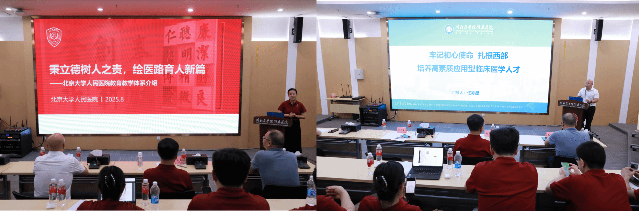 8月1日,为进一步提升临床教学质量,促进院校协同发展,北京大学人民医院专家团队赴川北医学院临床医学院·附属医院开展了教育教学系列活动。本次活动以“深化院校合作,共享教学成果,提升教学水平”为主题,通过教育教学经验分享、示范教学查房与小讲课等环节,为我院师生带来了一场高水平的教学盛宴。