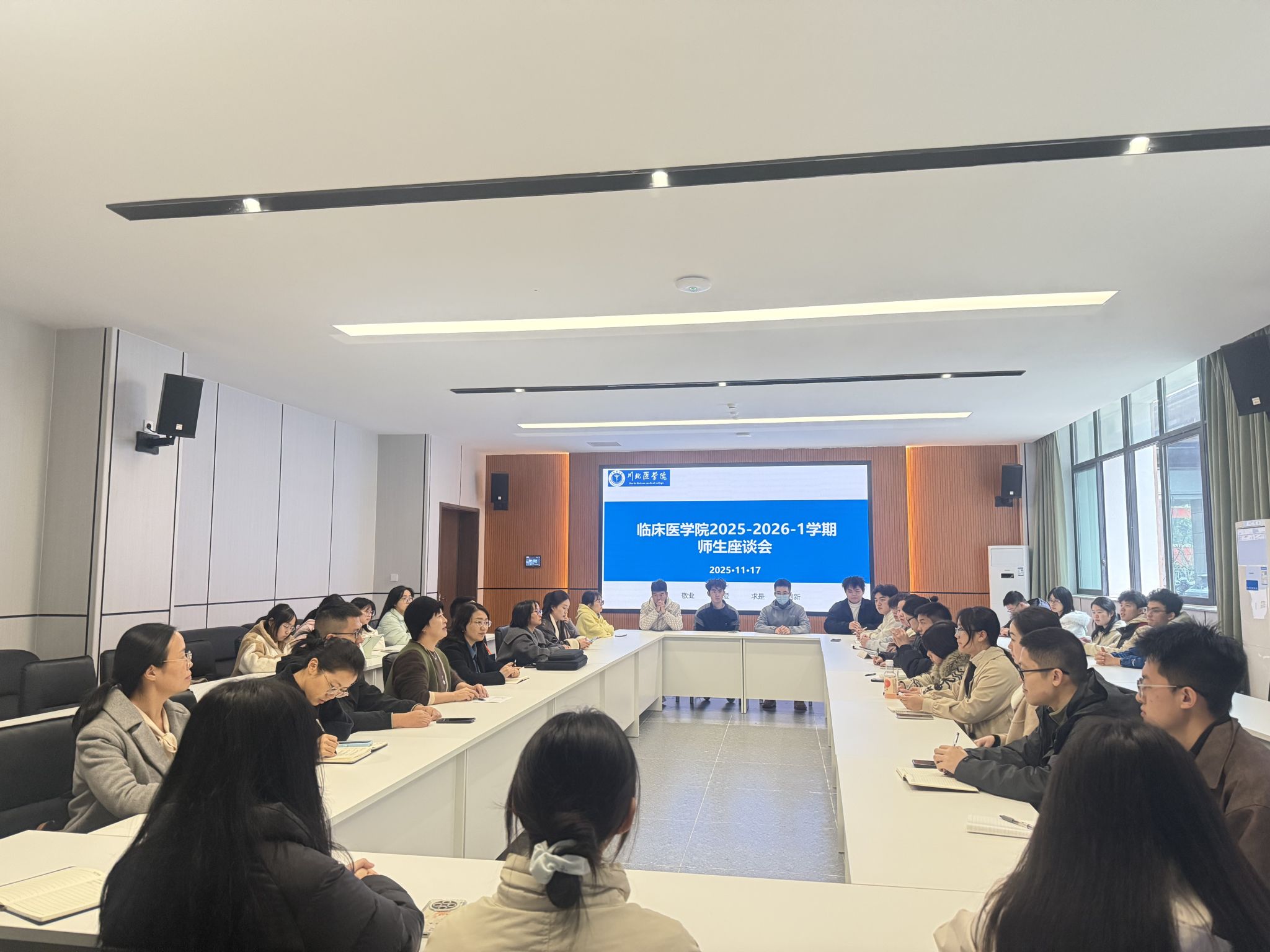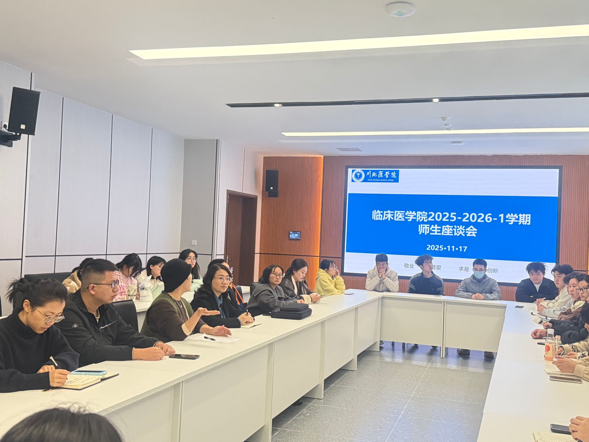 把“问题”摆到桌面,让“对策”当场落地。11月17日下午,临床医学院教务部牵头开了一场“面对面”师生座谈会,把学习、生活、心理三条成长主线一次聊透。学生工作党总支副书记杨雪梅、临床实验教学中心主任司丽静、教务部老师、各教研室骨干教师和各年级学生代表围桌而坐,现场收集“急难愁盼”,即刻开出“诊疗处方”,用一场高效对话为教学与管理服务水平“双提升”按下快进键。