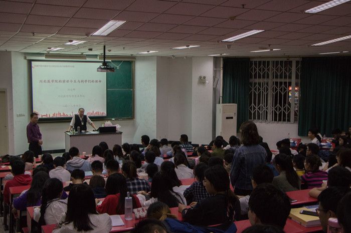 今年是改革开放四十周年,也是学校确立的质量提升年和改革深化年。为了加深同学们对改革开放的认识与感悟,提升同学们知校爱校的情怀,弘扬“艰苦奋斗、自强不息”的川北医精神,临床医学系特邀请到川北医学院原党委书记汤公群为师生们展开了一场 “川北医学院的前世今生与同学们的使命”专题讲座。