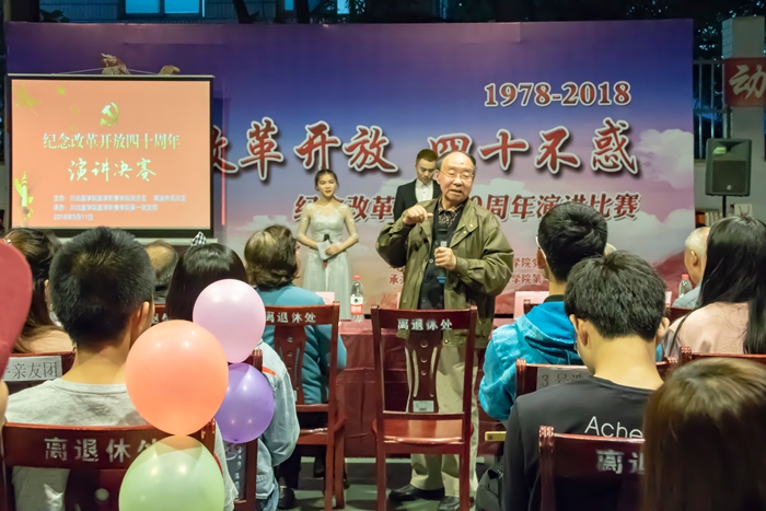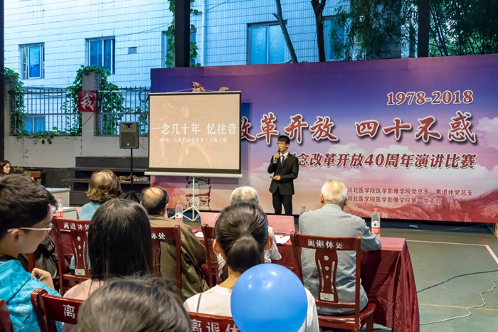 为纪念改革开放40周年,践行党的十九大精神,让当代青年树立与这个时代主题同心同向的理想信念,勇于担当这个时代赋予的历史责任。5月11日晚,医学影像学院党总支在我校顺庆校区离退休活动中心举行“改革开放,四十不惑”纪念改革开放40周年演讲比赛决赛。比赛邀请了学校原党委书记、现任学校关工委顾问汤公群,学校原党委书记、现任学校关工委执行主任张春霞,关工委委员杨纯良、潘庆高、邓忠贵、任桂秀6位老师担任评委。医学影像学院全体党员和第143期入党积极分子参加了此次活动。