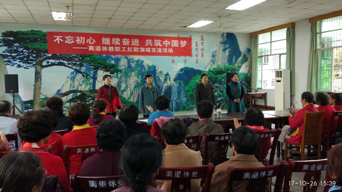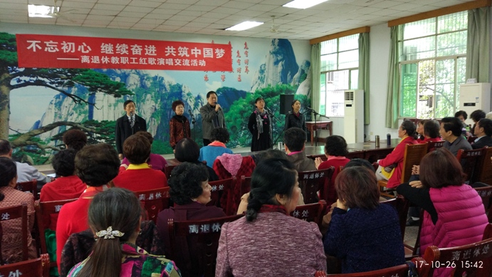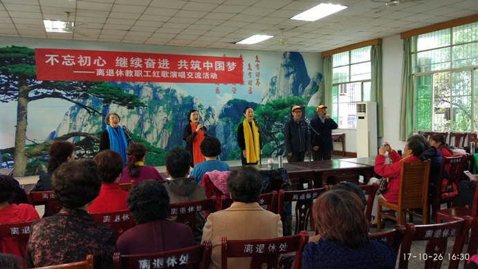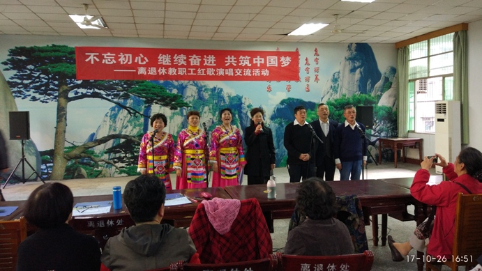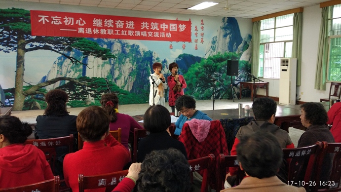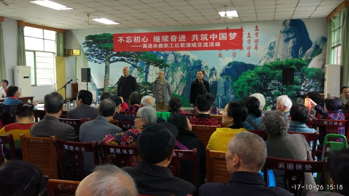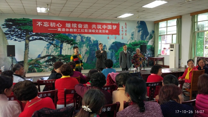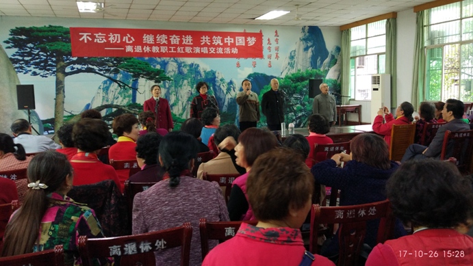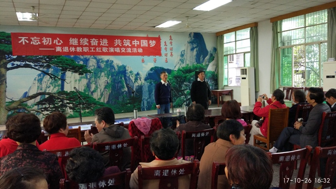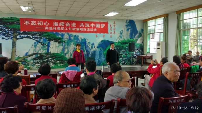 在党的十九大胜利闭幕后,10月26日下午,学院离退休处、党总支组织老同志在老年活动中心开展了以“不忘初心、继续奋进、共筑中国梦”为主题的卡拉OK红歌演唱交流活动,25个演唱组合120余名老同志参加了活动。