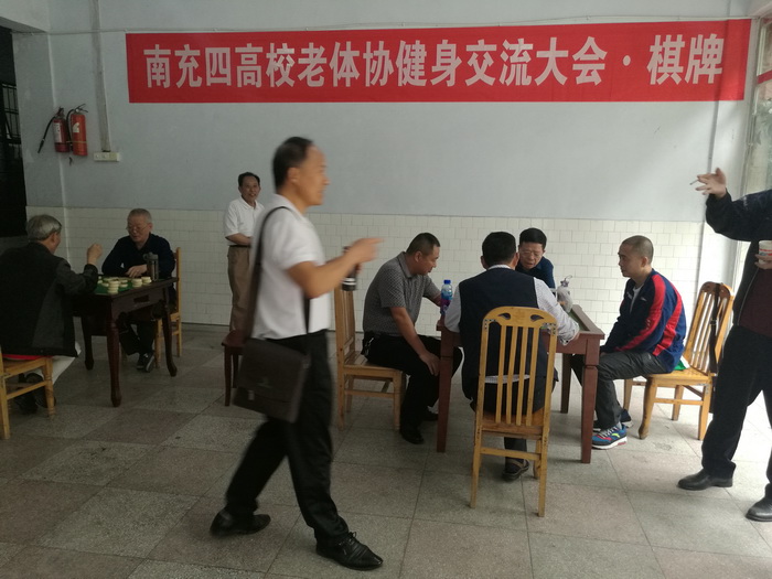 6月1日下午,由南充四高校老体协主办,南充职业技术学院承办的2018年“南充四高校老体协棋牌比赛”在该校南校区举行,我校和西南石油大学、西华师范大学、南充职业技术学院的28名老同志参加了象棋、麻将、双扣和跳棋四个项目的比赛。经过2个小时的激烈角逐,我校获得象棋组第二名。老同志们在比赛中本着“友谊第一,比赛第二,重在参与”的精神,尊重对手,服从裁判,充分展示了我校老同志良好的技艺和精神风貌。