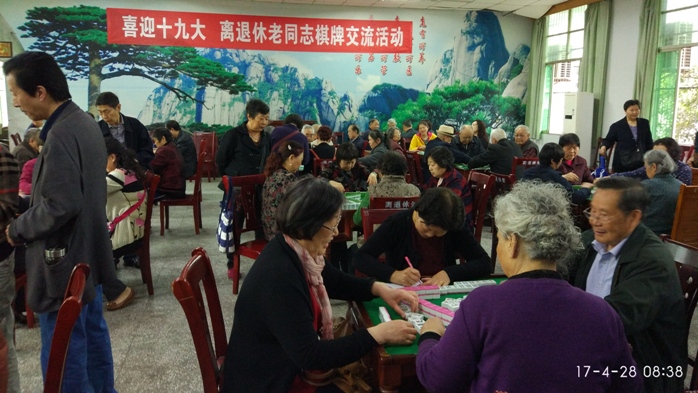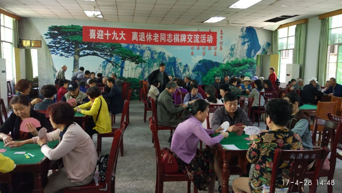 为凝聚广大离退休教职工人心,汇聚正能量,坚定信念,喜迎党的十九大胜利召开,丰富离退休老同志的精神文化生活,4月28日,离退休处、党总支在学院老年活动中心组织开展了“喜迎十九大,离退休老同志棋牌交流活动”,180余名老同志参加了活动。