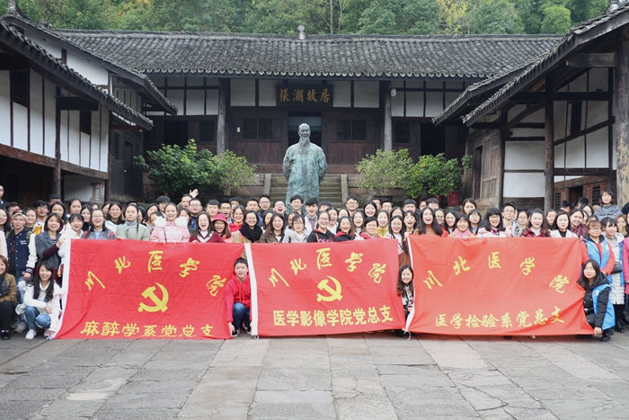 为深入学习贯彻党的十九大精神,进一步推进“两学一做”工作常态化、制度化,教育引导党员“不忘初心,牢记使命,继续前进”,将革命传统教育和党风廉政教育相结合,发挥党员先锋模范作用, 12月3日,学校影像学院党总支、麻醉学系党总支、检验学系党总支全体师生党员和部分学生入党积极分子参观红色教育基地西充县张澜故居。
