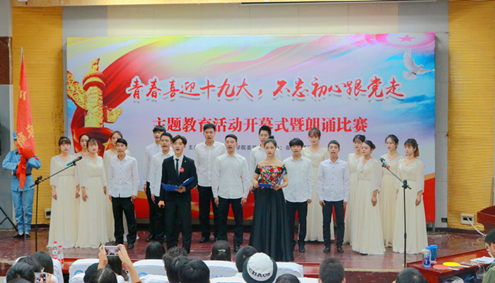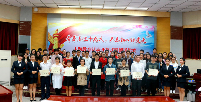 为歌颂党的伟大成就,增强同学们爱党爱国之情,提高当代大学生的政治素养,丰富校园文化生活,10月17日晚,由校团委主办,以“青春喜迎十九大,不忘初心跟党走”为主题的系列教育活动开幕式暨朗诵比赛在高坪校区图信大楼407成功举办,团委书记王帅亭子、各院系学生代表等300余名师生参加活动。
