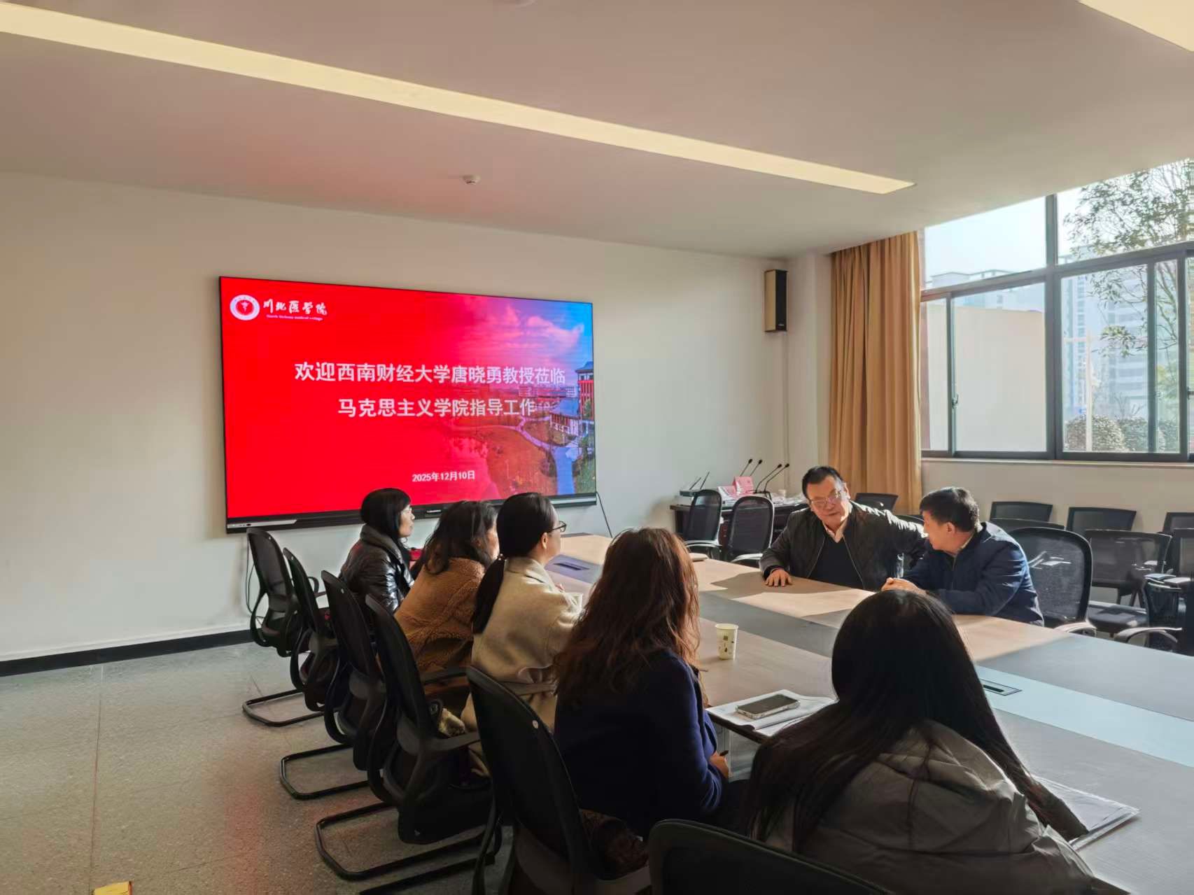 2025为进一步加强新时代马克思主义学院建设,夯实理论宣传与思想政治教育主阵地,12月9日,我院特邀四川大学马克思主义学院刘渊教授莅临指导。刘渊教授围绕马克思主义理论学科建设、思想政治理论课改革创新、学术研究与社会服务协同发展等方面开展了深入交流与专题指导。在座谈会上,我院党总支书记、院长胡澜首先介绍了学院在学科发展、课程建设、师资队伍以及理论宣传阵地建设等方面的基本情况与未来规划。刘渊教授认真听取汇报后,结合四川大学马克思主义学院的建设经验,...