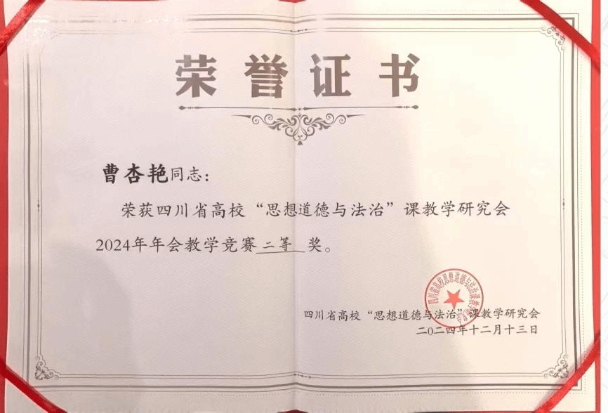下午,来自省内各高校近70位德法课教师分四组进行教学竞赛。他们同台竞技,赛出了水平、赛出了风格,生动实践了习近平总书记“把道理讲深、讲透、讲活”的重要指示,共同推动“思想道德与法治”课教学理论创新、形式创新、方法创新,为“思想道德与法治”课教育教学质效提升做了示范引领。我院曹杏艳老师以《错误人生观辨析》为题,以良好的形象、稳健的台风、精彩的讲述赢得本次教学竞赛二等奖。