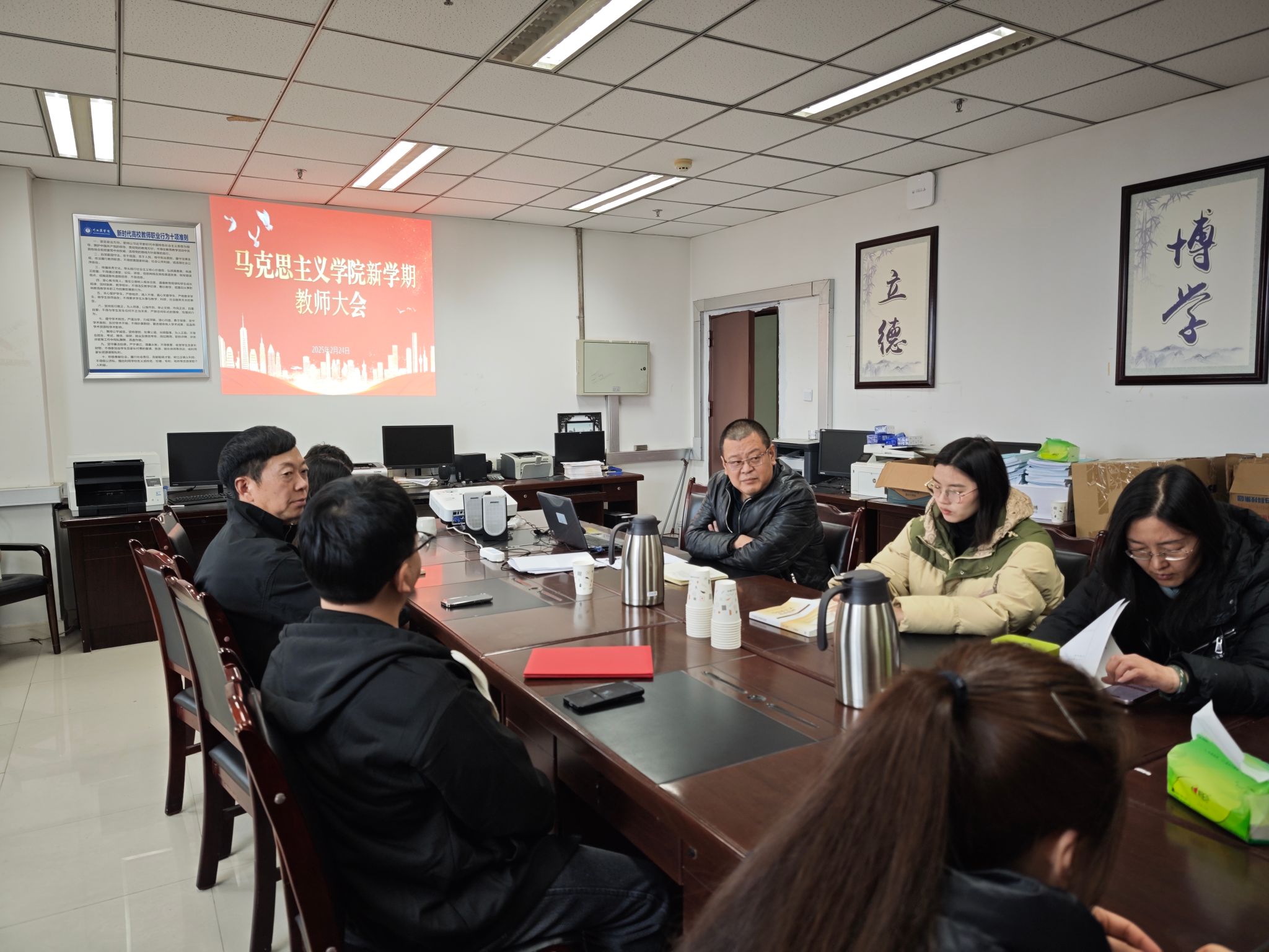 2025年2月24日,马克思主义学院在学院大会议室召开了2025年新学期教师大会。会议由党总支书记、院长胡澜主持,全体教职员工参加。大会总结了过去一年的成绩与不足,明确了新学期的工作重点与发展目标。