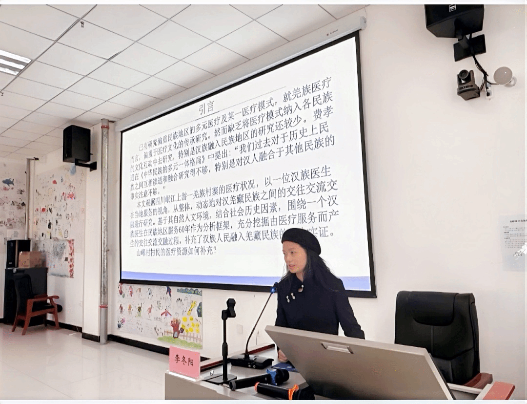 我院副教授李冬阳博士带队参会,并于10月11日作了题为《补阙拾遗:一个汉族医生在民族地区的交往交流交融案例》的主题报告,分享团队研究成果,引发与会学者关注与讨论。报告中,李冬阳副教授以四川岷江上游羌族村寨山峰村为研究对象,聚焦汉族医生邓中木在当地60年的医疗服务实践,结合田野调查与文献研究成果展开论述。据介绍,团队于2021年1月至2023年3月累计在山峰村开展12个月调研,通过参与观察、深度访谈、微信沟通等方式,系统梳理当地医疗资源与民族互动历程。该研究还补充了汉族融入羌藏民族的鲜活实证,为中华民族共同体理论体系建设提供了微观实践视角。