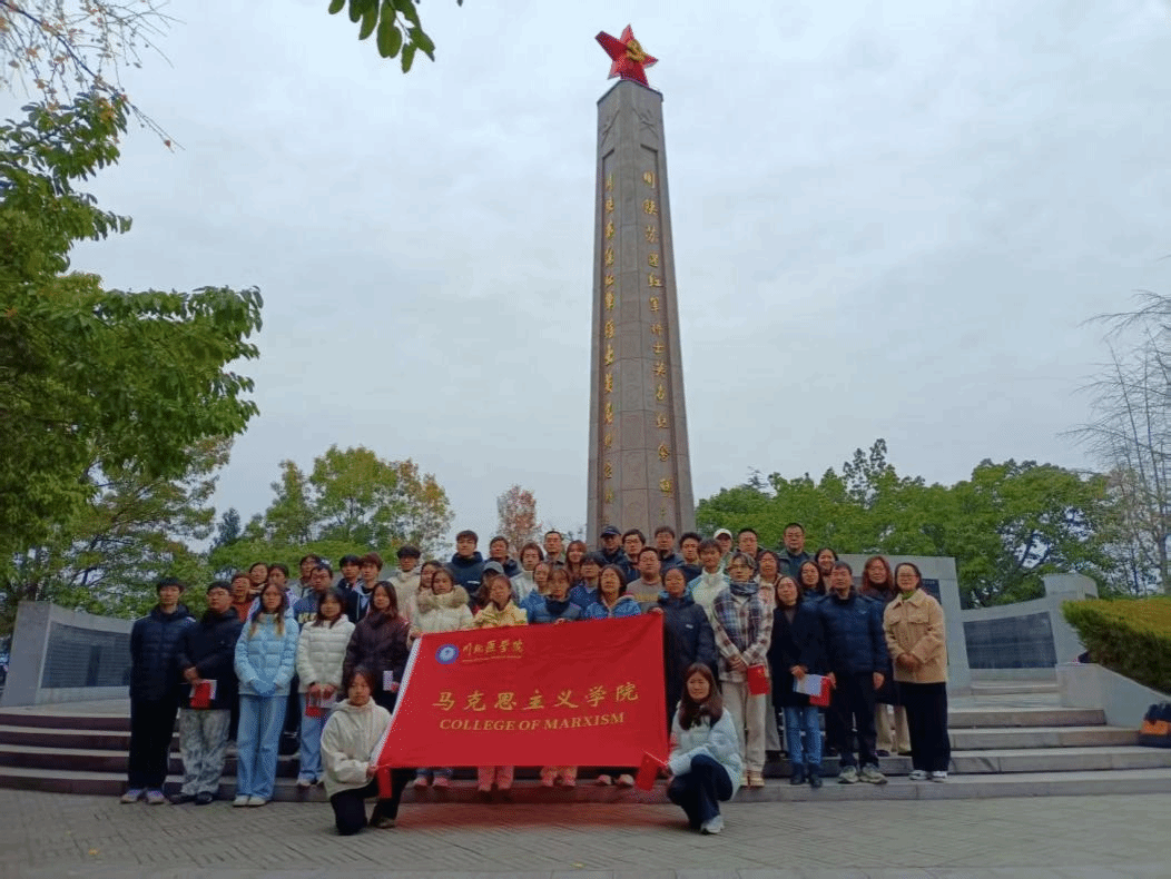 培训当日上午10点,学员们首先抵达川陕苏区将帅碑林纪念馆。在庄严肃穆的氛围中,大家认真聆听讲解,通过《无衔女将军——张琴秋》《红色天骄——川陕苏区妇女独立团的巾帼壮歌》两堂生动的主题教学,深刻感悟革命先辈特别是巾帼英雄们坚定的理想信念、无畏的牺牲精神和忠诚的政治品格。随后,学员们怀着崇敬的心情奔赴川陕革命根据地红军烈士陵园。在巍峨的红四方面军英勇烈士纪念碑前,全体学员整齐列队,举行了庄严的敬献花篮仪式,并重温入党誓词,铿锵誓言在山谷间回荡,表达了不忘初心、牢记使命的坚定决心。接着。学员们缓步走过集墓区,向长眠于此的25048名红军烈士敬献单枝菊花,并瞻仰了万余座散葬墓区,在无尽的追思与敬意中接受灵魂的洗礼。接下来是访谈教学的环节。在该环节,红军后代守陵人以朴素而深情的语言,娓娓道来那些铭刻在家族记忆里的往事。许多师生沉浸在这份跨越时空的情感共鸣中,悄然红了眼眶。到了下午4点半,学员们走进了红军烈士纪念馆。红军烈士纪念馆中一件件珍贵文物、一段段悲壮历史,让学员们深受震撼。最后,在红军烈士纪念馆前,全体学员肃然列队,以饱满的激情齐声高唱《没有共产党就没有新中国》。激昂的旋律在青山翠谷间回荡,为这次红色寻根之旅画上了充满力量与信念的句号。