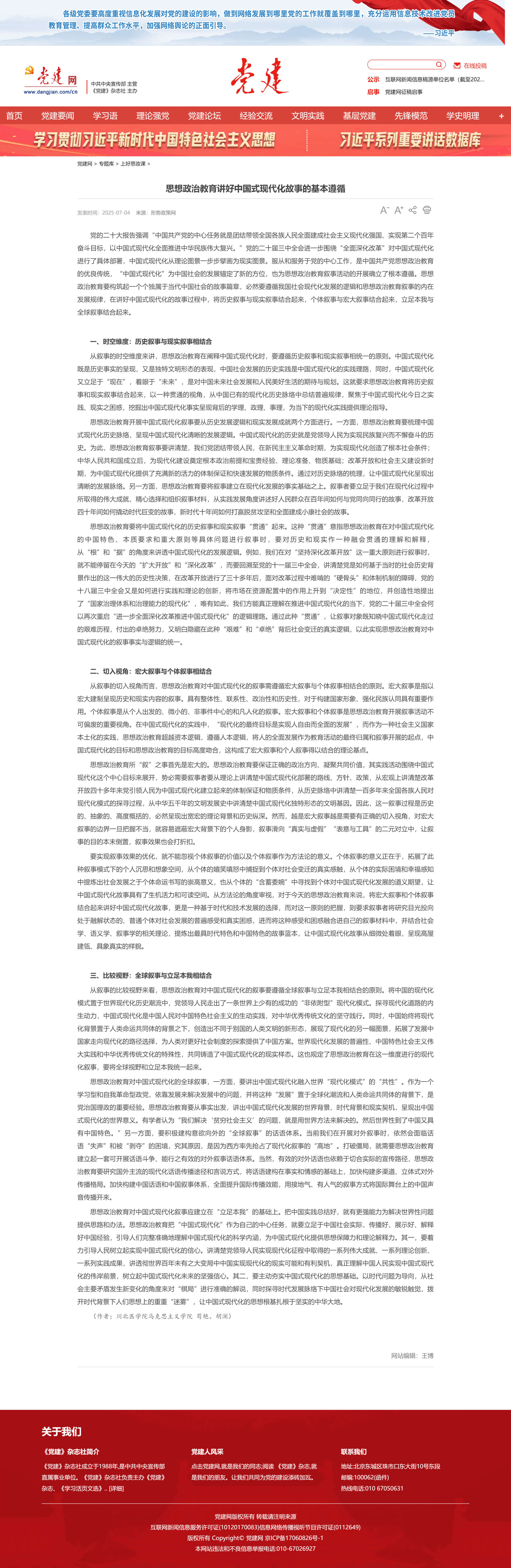 2025年7月4日,党建网全文转载了我院教师苟艳、胡澜于2025年7月3日发表在形势政策网上的理论文章《思想政治教育讲好中国式现代化故事的基本遵循》。详情如下: