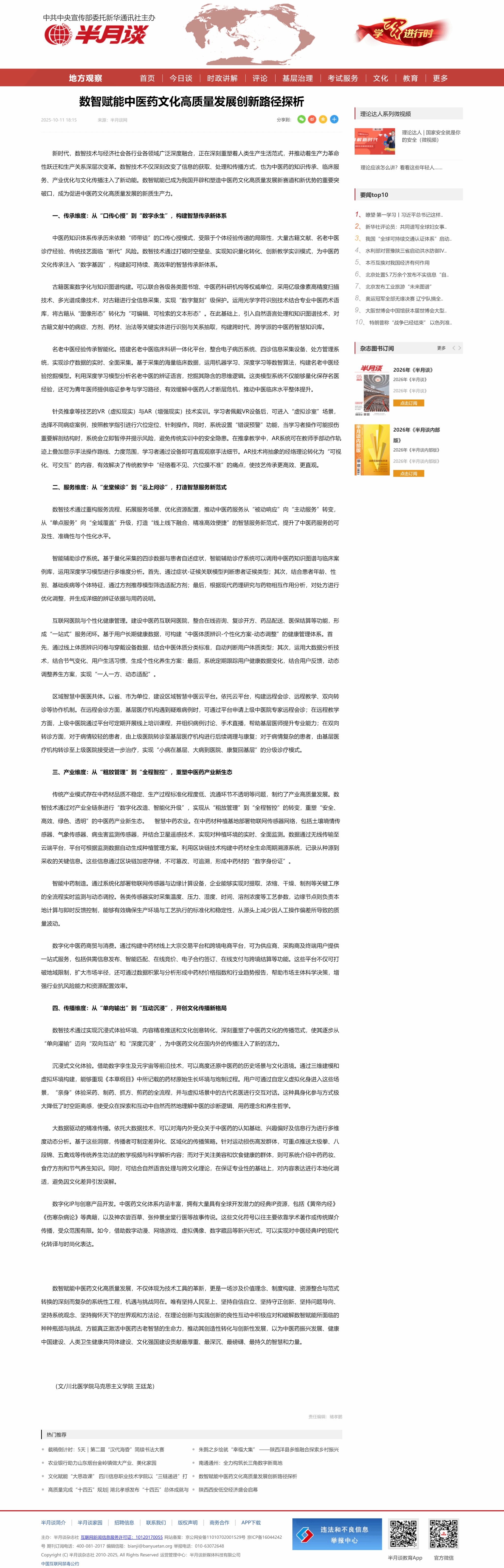 2025年10月11日,我院教师王廷龙在半月谈网发表理论文章《数智赋能中医药文化高质量发展创新路径探析》。详情如下: