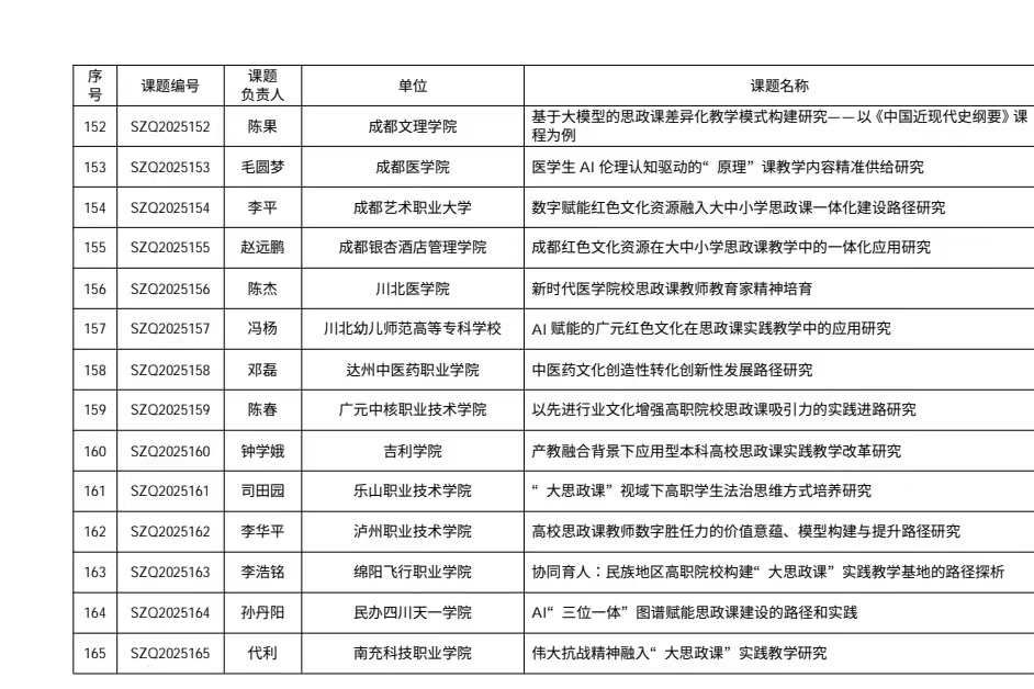 根据《四川省教育厅关于开展2025年四川省思想政治教育研究课题(思想政治理论课青年教师专项)申报工作的通知》要求,经学校申报,专家评审,2025年四川省思想政治教育研究课题(思想政治理论课青年教师专项)揭晓,我院教师陈杰申报的项目《新时代医学院校思政课教师教育家精神培育》获批立项。
