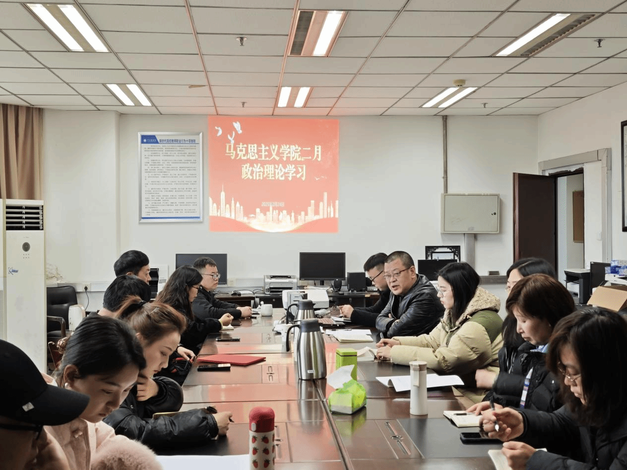 为深入学习贯彻习近平新时代中国特色社会主义思想,强化教职工思想政治引领,2月24日下午,马克思主义学院在高坪校区马院会议室召开2月教职工政治理论学习会议。会议由学院党总支书记、院长胡澜主持,全体无课教职工参会。