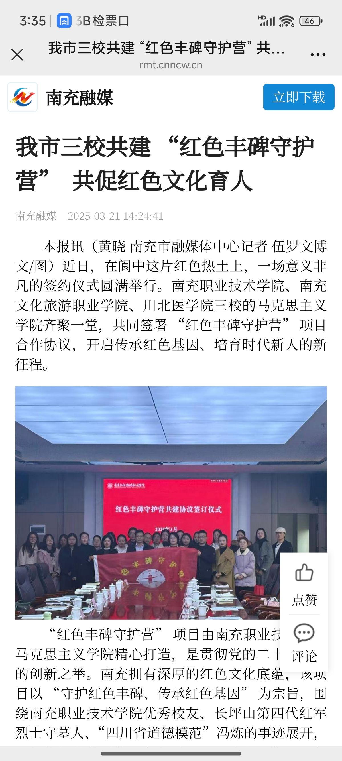 近日,南充融媒报道我院“红色丰碑守护营”项目签约仪式。