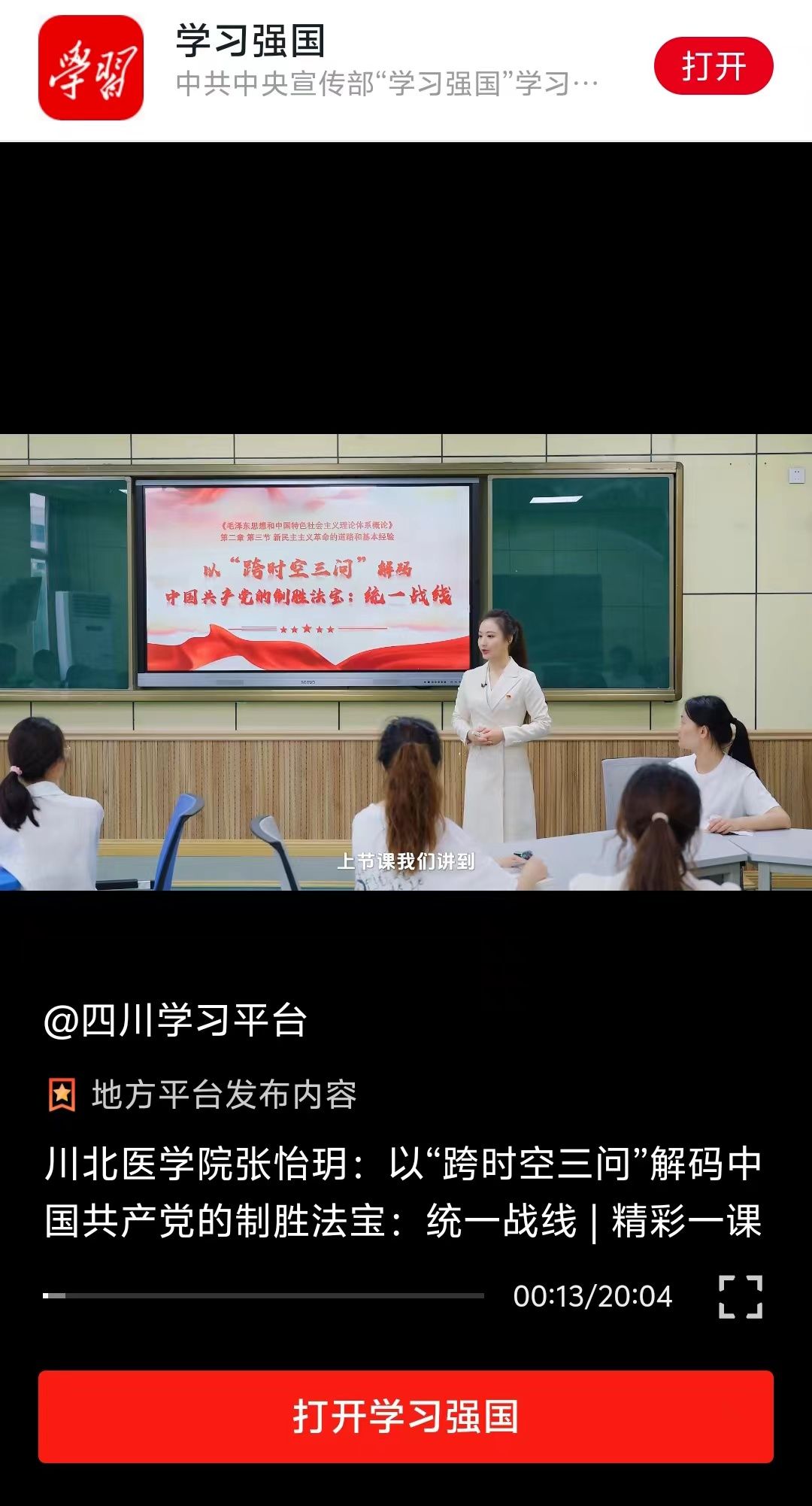 原视频链接如下:https://article.xuexi.cn/articles/index.html?art_id=1181935604474377987&item_id=1181935604474377987&cdn=https%3A%2F%2Fregion-sichuan-resource&study_style_id=video_default&source=share&share_to=wx_single