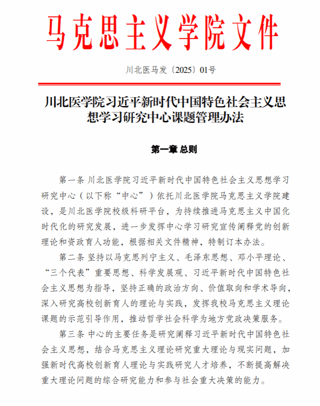 川北医学院习近平新时代中国特色社会主义思想学习研究中心课题管理办法