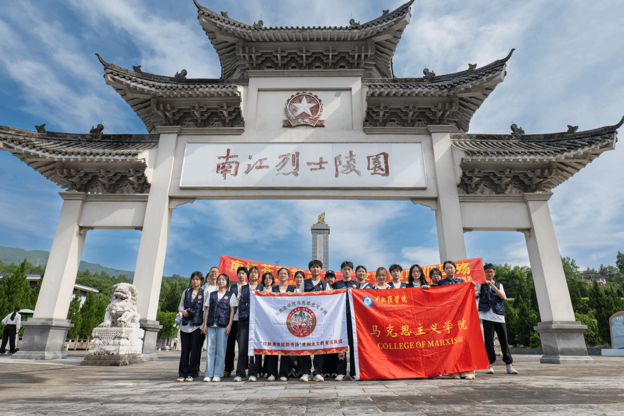 为纪念中国人民抗日战争暨世界反法西斯战争胜利80周年,追忆革命先烈的英勇事迹,传承红色革命精神,7月9日上午,在任毅老师的带领下,川北医学院马克思主义学院“红脉赓续·国韵传扬”爱国主义教育实践团奔赴巴中南江烈士陵园,感悟革命红韵百年,传承赤心一脉。