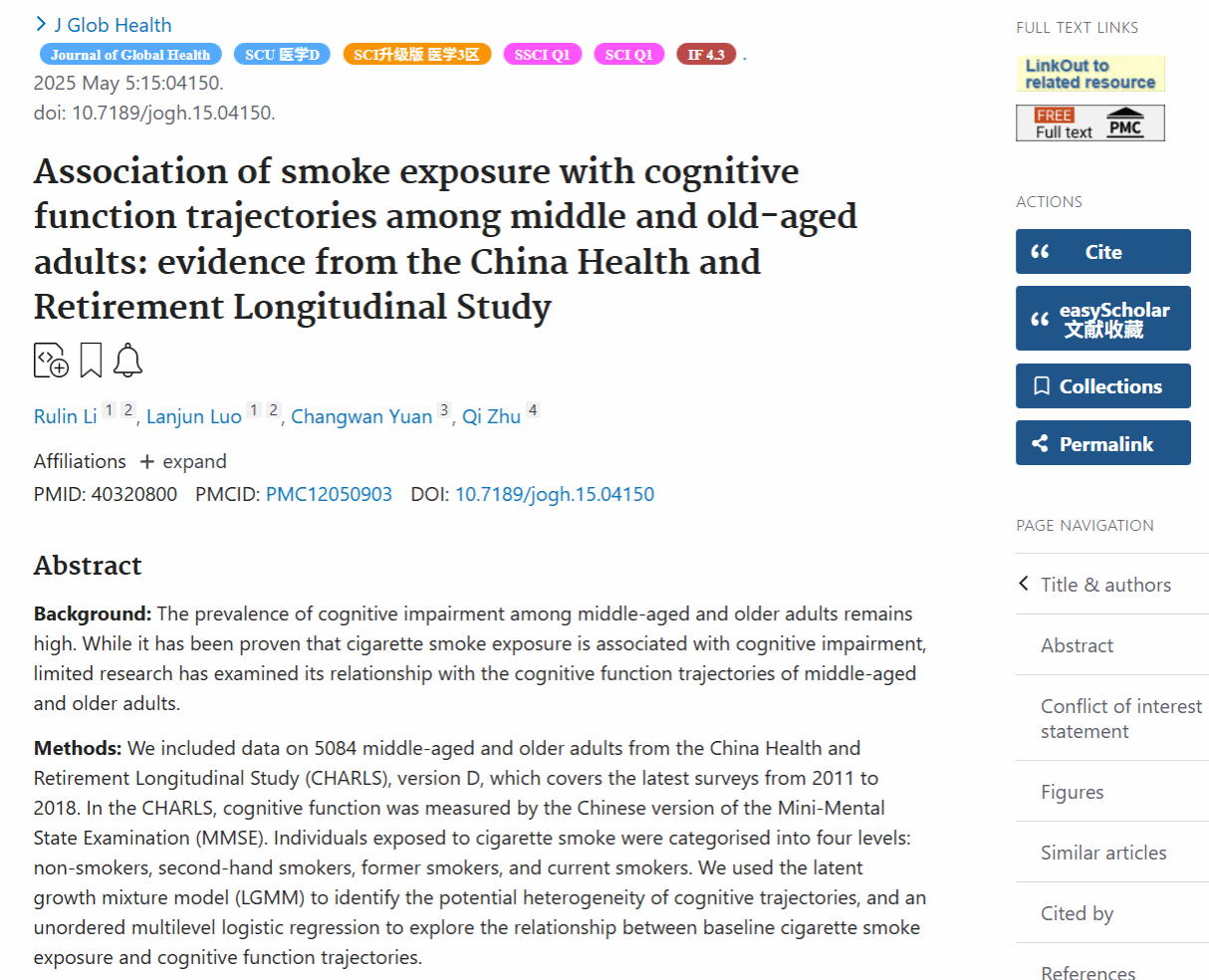 MLIS教育中心教师罗澜峻在SSCI期刊《Journal of Global Health》上发表论文