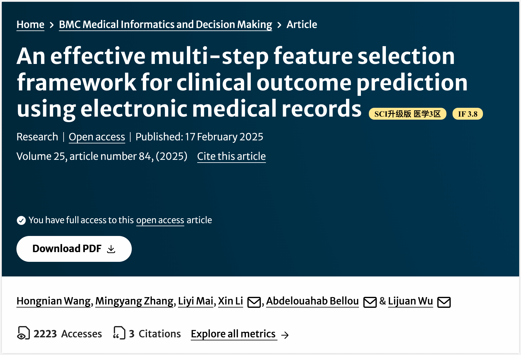 MLIS教育中心教师汪鸿年在SCI期刊《BMC Medical Informatics and Decision Making》上发表论文